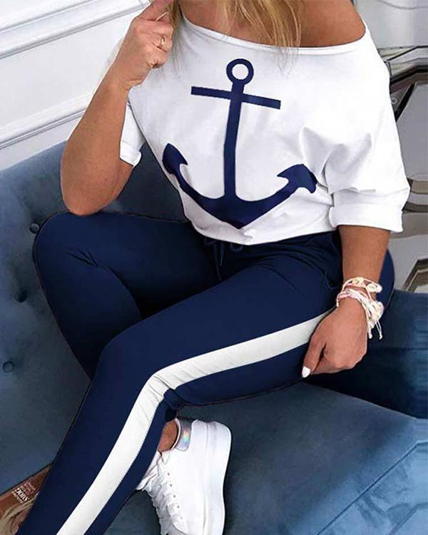 Women Spring sexy off shoulder Elastic Waist Tracksuit sets