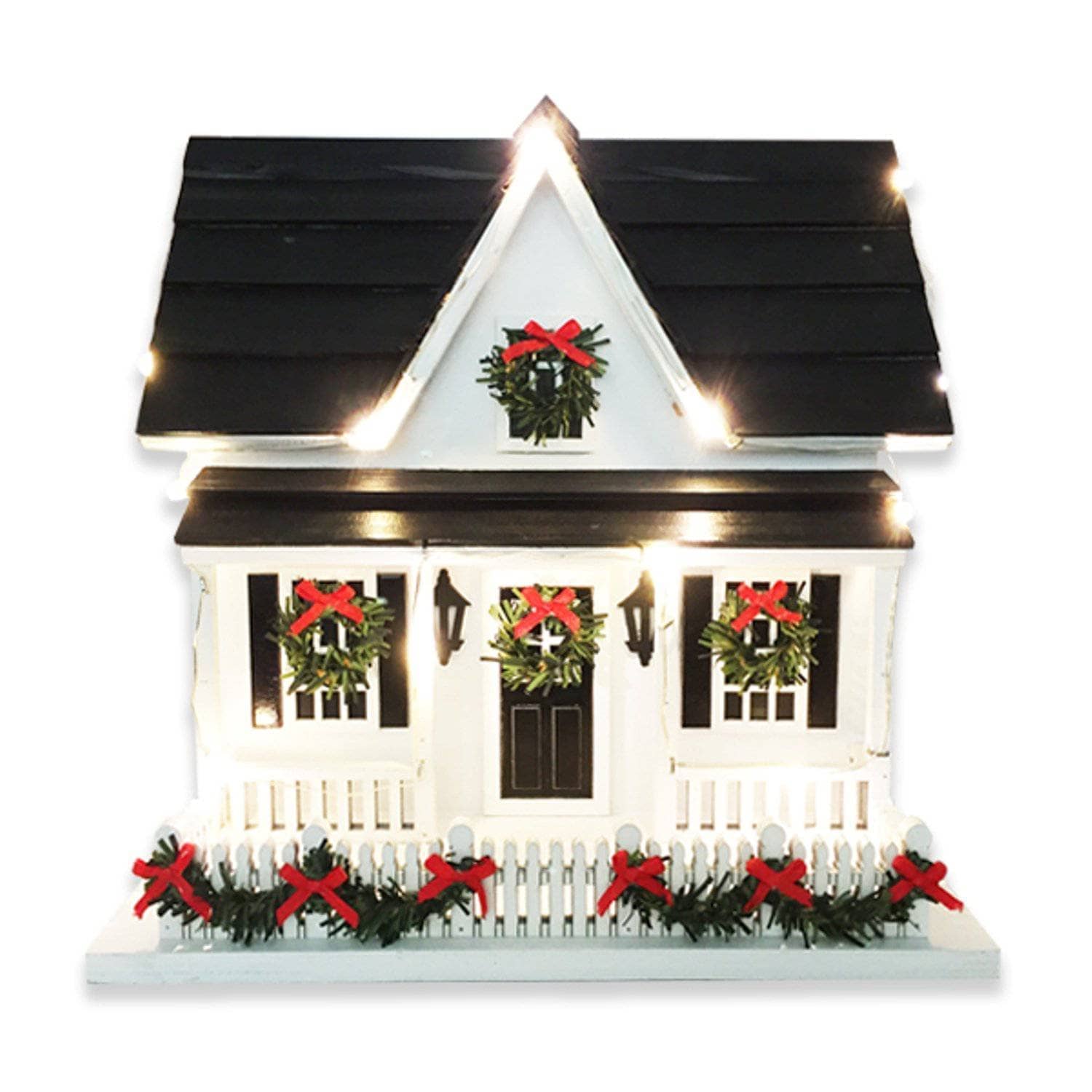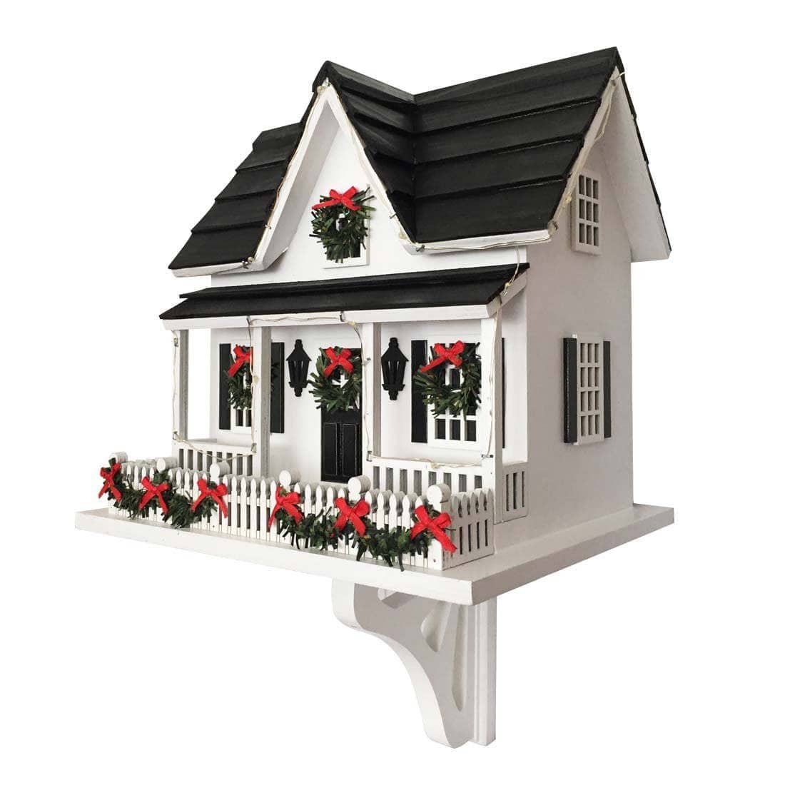 Give the birds a beautiful home for the holidays. This delightful birdhouse this a welcomed addition for the holidays to be used inside or outdoors. Decorated with miniature LED Lights, which give the house an inviting warm glow. Holiday wreaths are hung on the front door and windows. We've added a spray of garland across the fence that welcomes you and your birds. Details include a great little porch combined with a fully functional removable back wall. Drainage & ventilation, make this the ultimate Holiday Birdhouse. Comes equipped with a mounting bracket for easy installation.