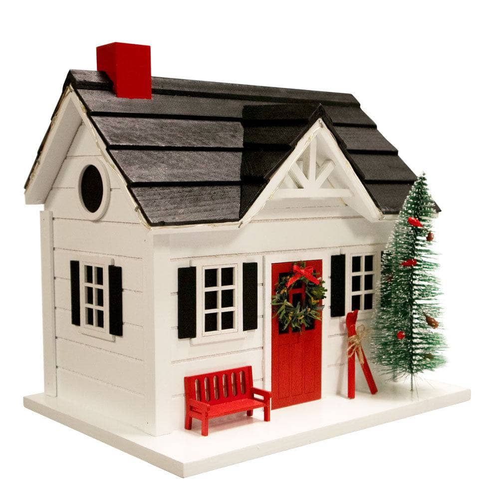 Our Holiday Ski House has all the details for a functional birdhouse, cleanout drainage and ventilation. You may want to consider keeping this piece inside to enjoy the winter season. If not, wrens, finches, chickadees, nuthatches, and titmice are the likely birds to nest here.