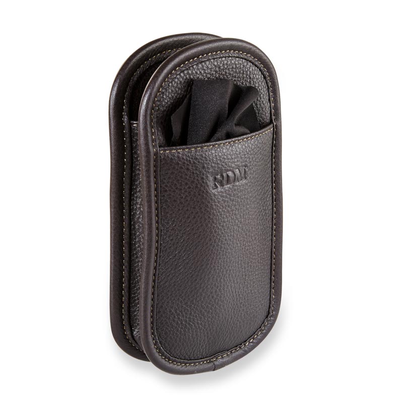 For hardly any extra space, enjoy carrying two pens riding comfortably with your glasses. In fact, the pens act as protective pillars keeping the whole ensemble united in strength. All three are protected by our smooth twill lining, internal case padding, and the natural pebbled texture of the full-grain Levenger Bomber Jacket leather exterior. The outside slip pocket can secure your cleaning cloth (included) and a few bills or cards as well as an Apple AirTag™. Available in .