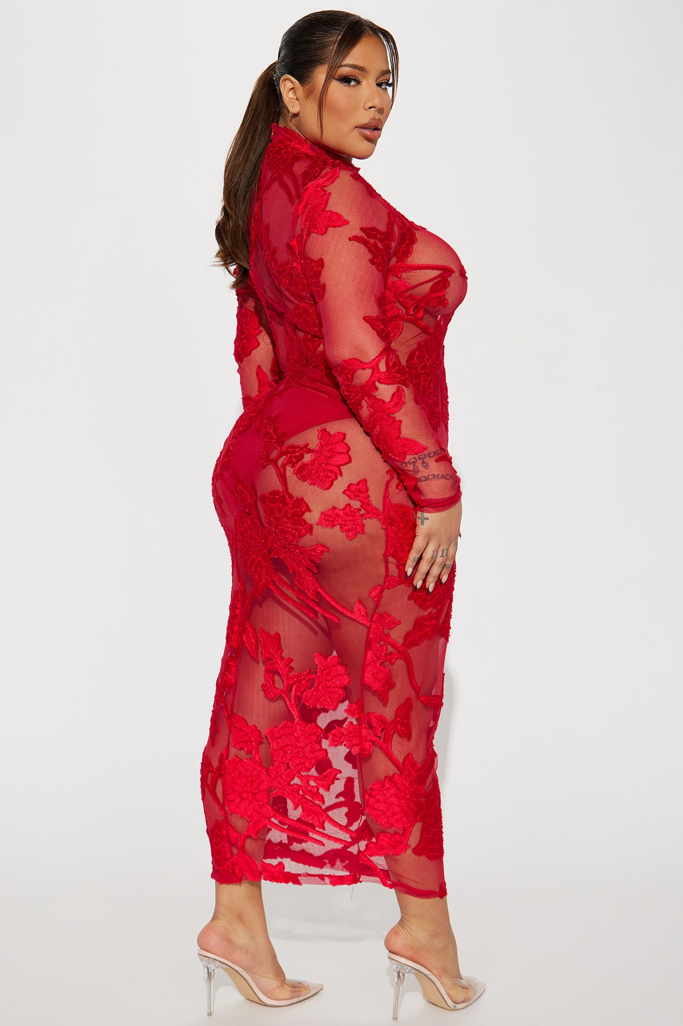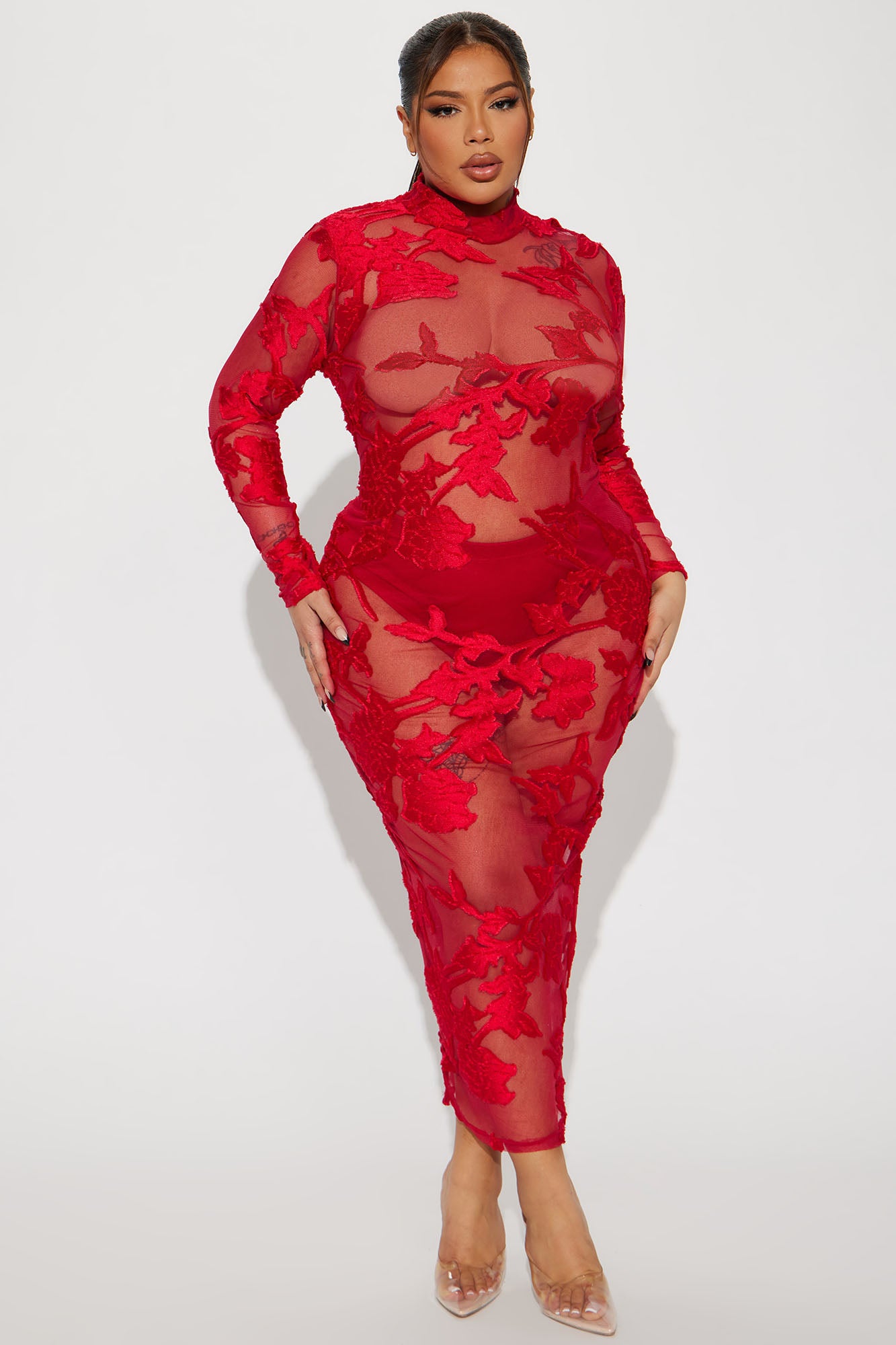 Finale Rose Mesh Maxi Dress - Red