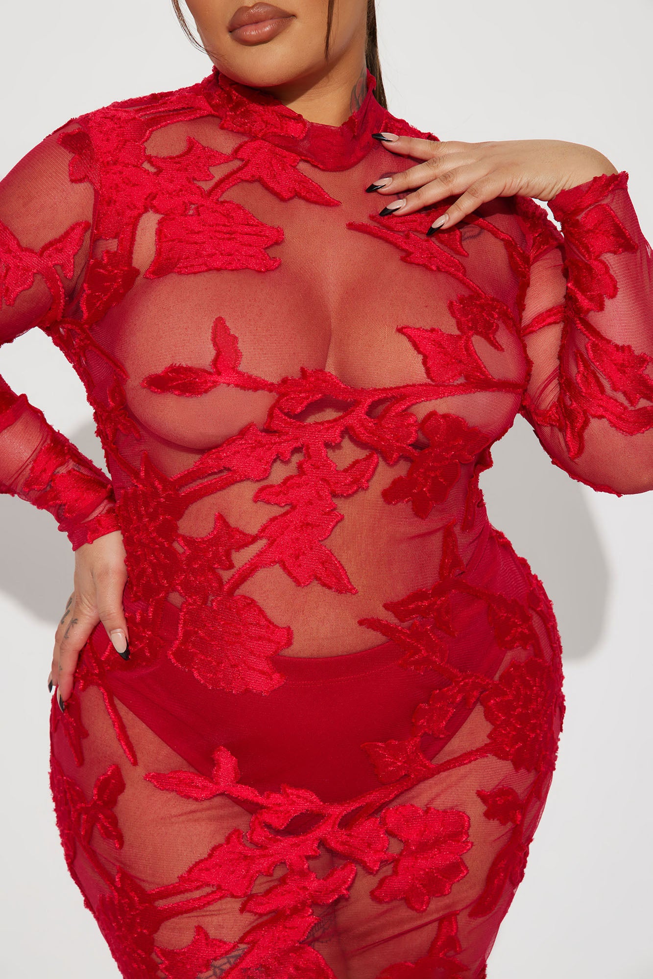 • Finale Rose Mesh Maxi Dress - Red