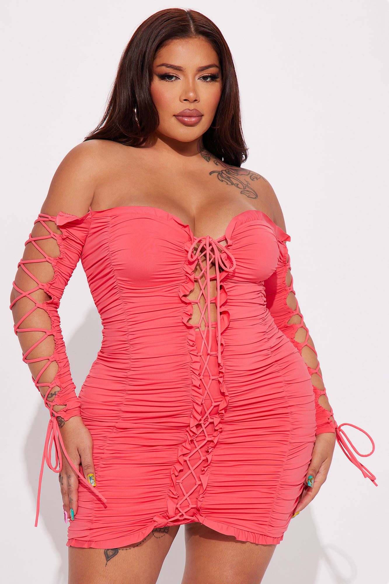 Time to Slay Mini Dress - Coral