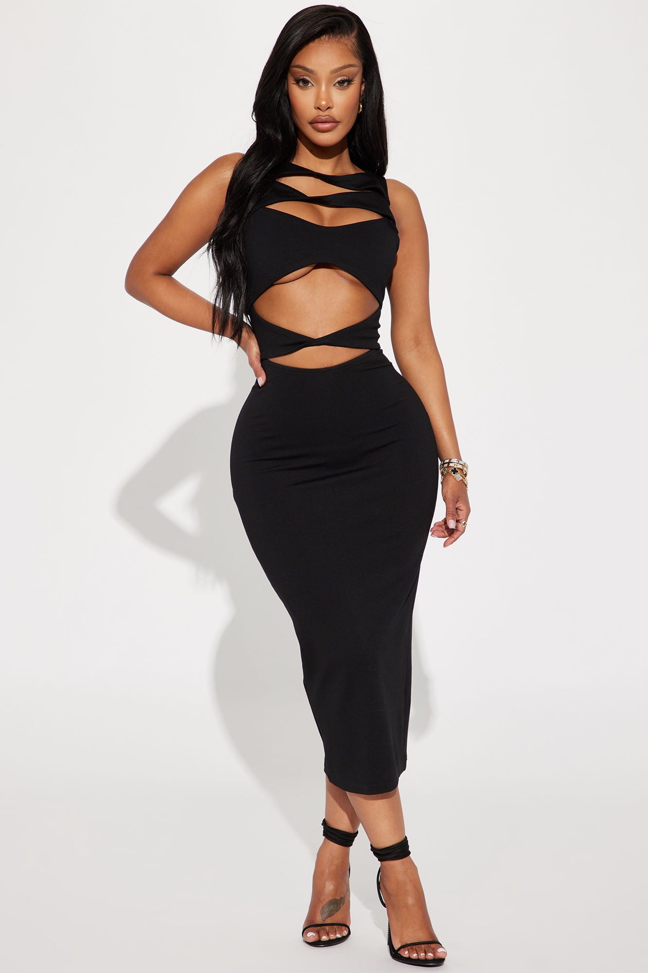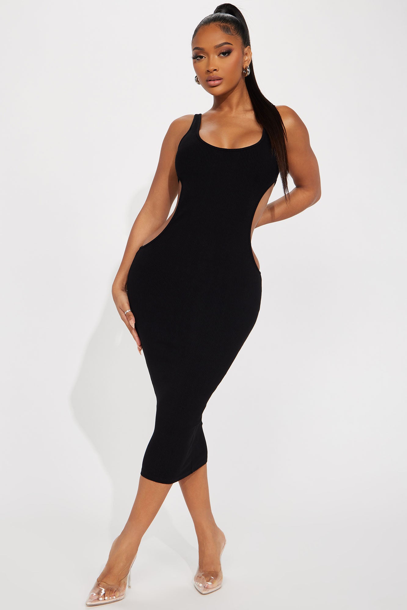 Only Missing You Cut Out Midi Dress - Black