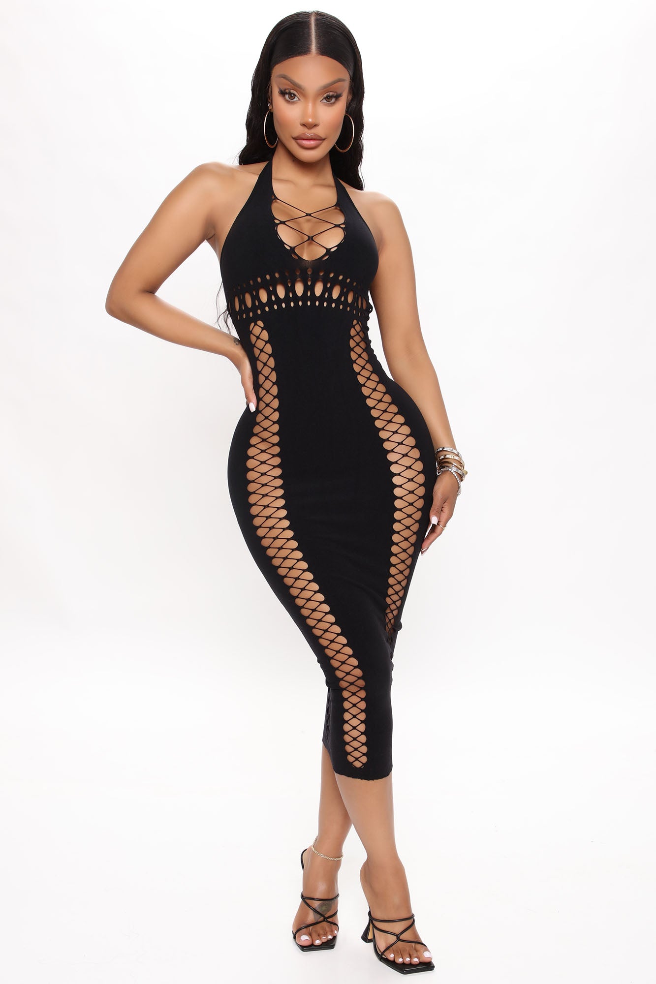 Can't Look Away Midi Dress - Black