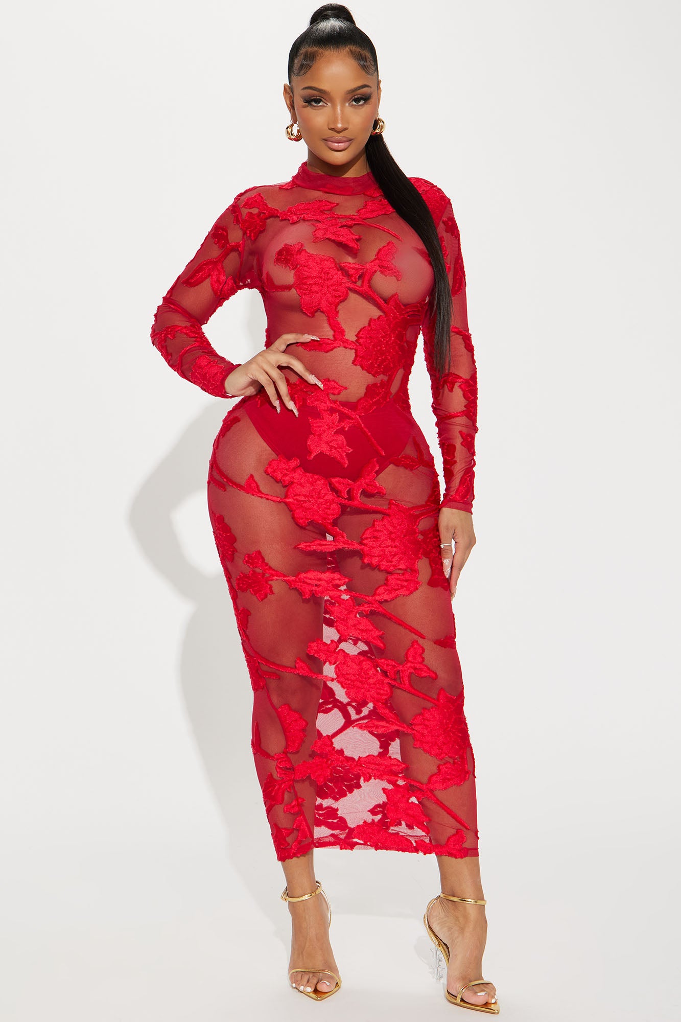 Finale Rose Mesh Maxi Dress - Red