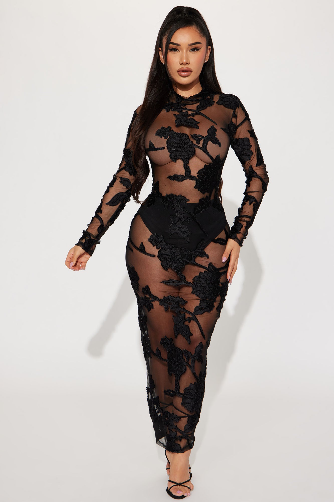 Finale Rose Mesh Maxi Dress - Black