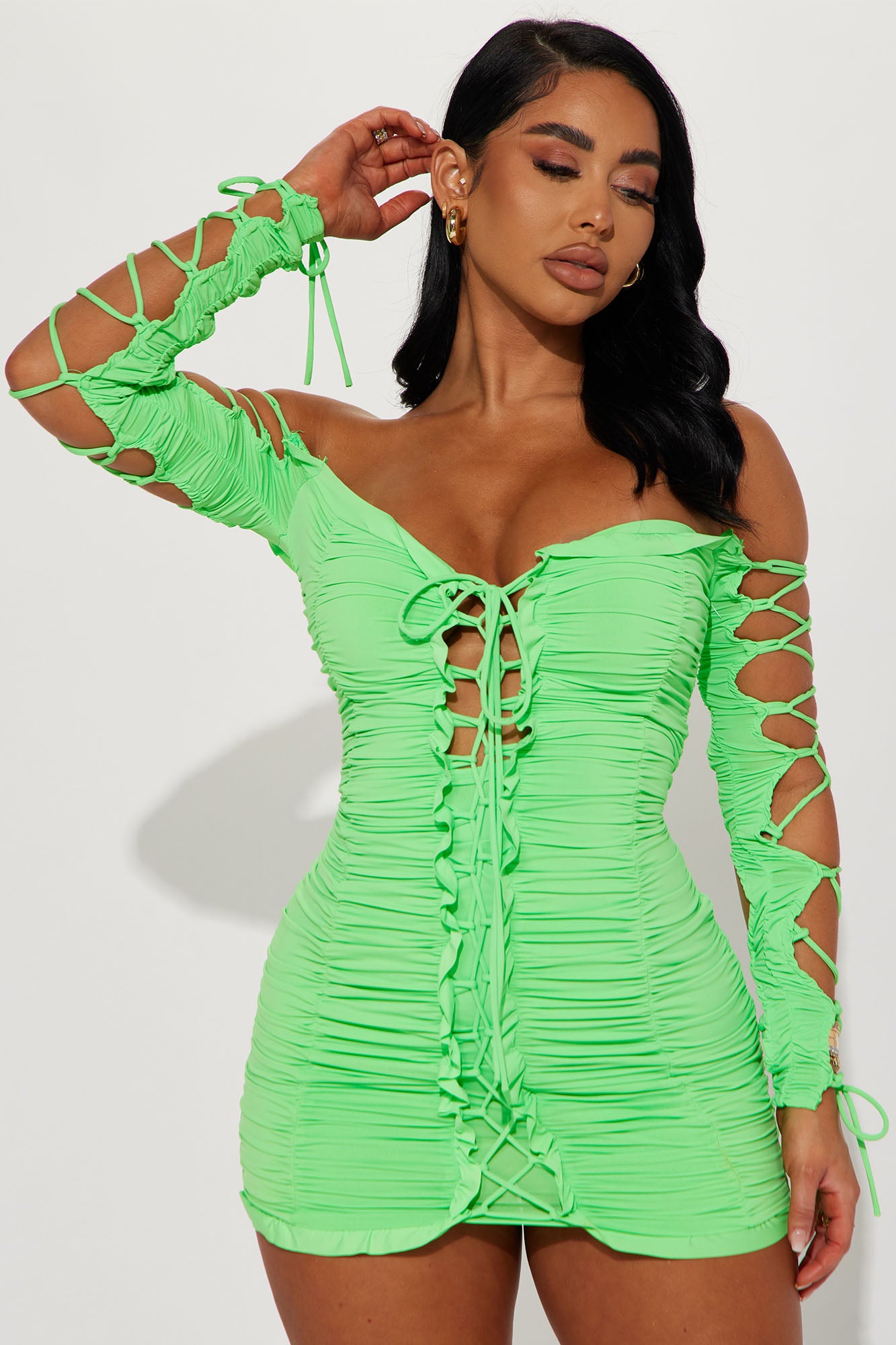 Time to Slay Mini Dress - Lime