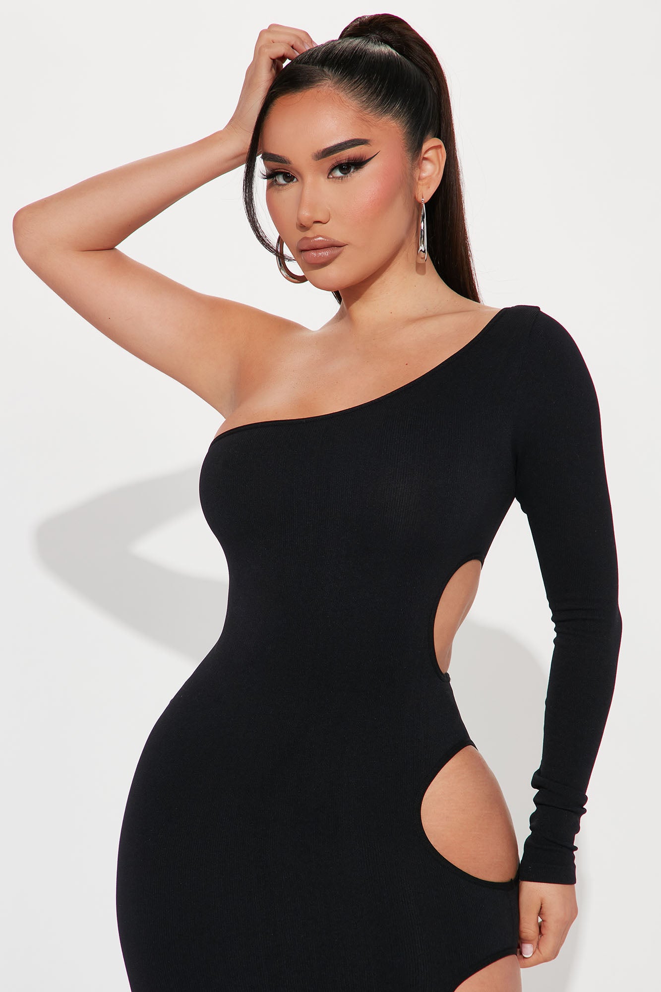 Cut Me In One Shoulder Mini Dress - Black