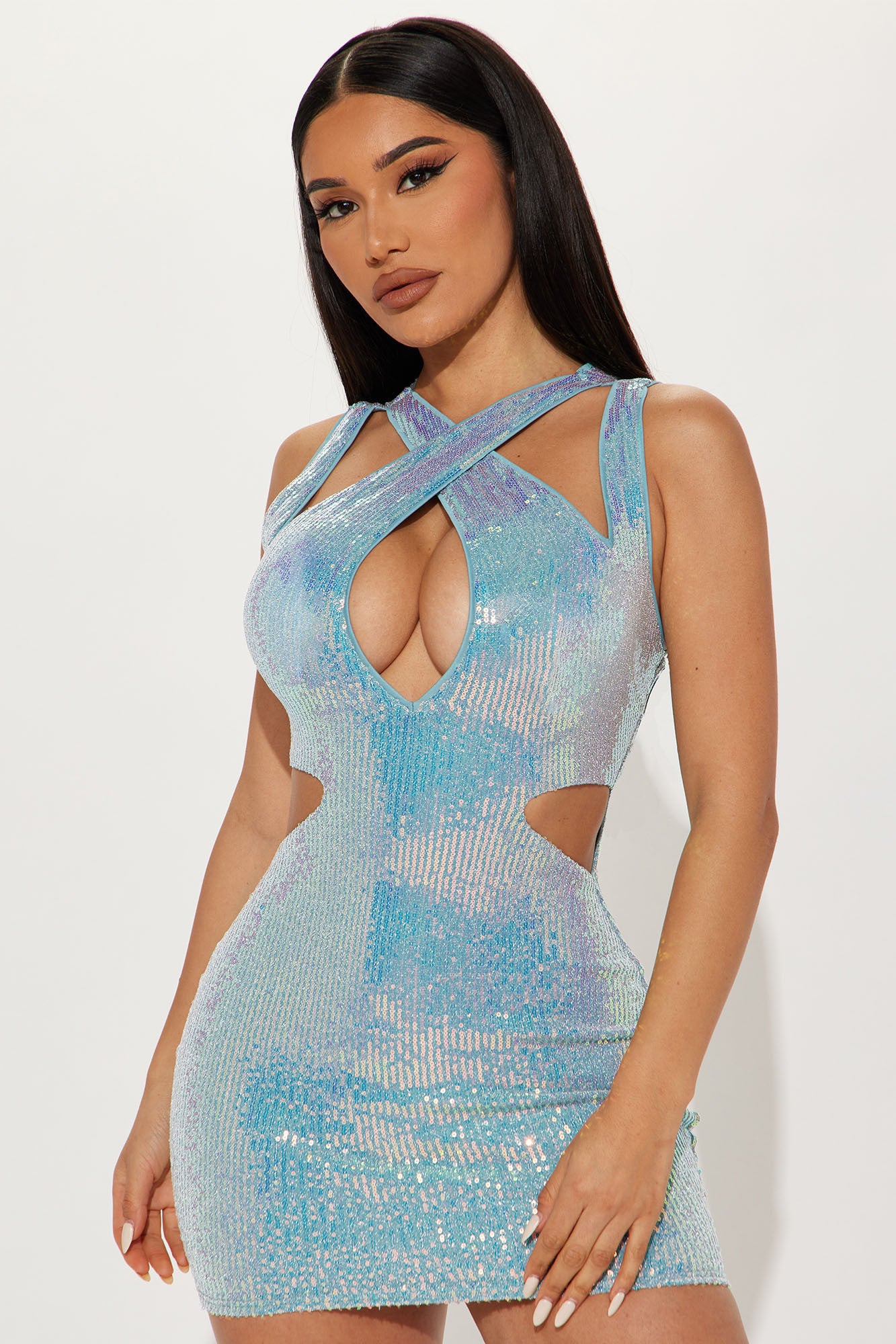 Sequin Dreams Mini Dress - Light Blue