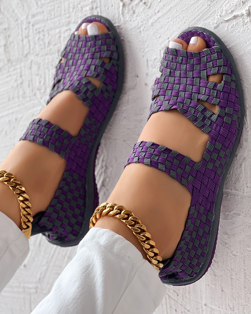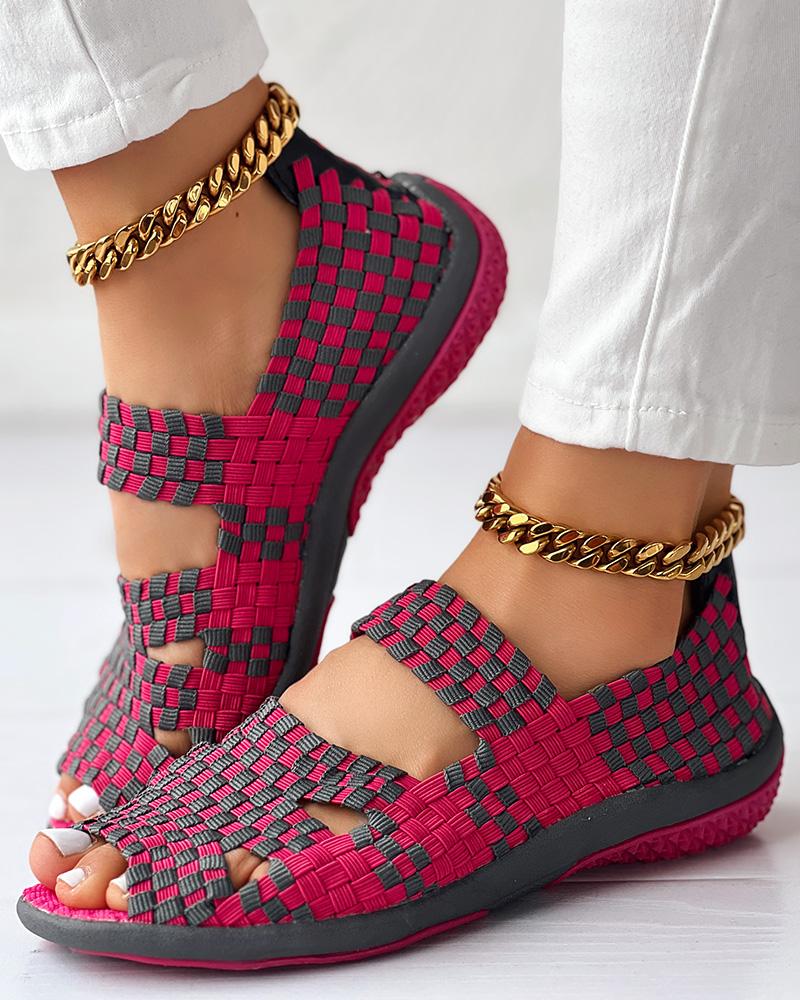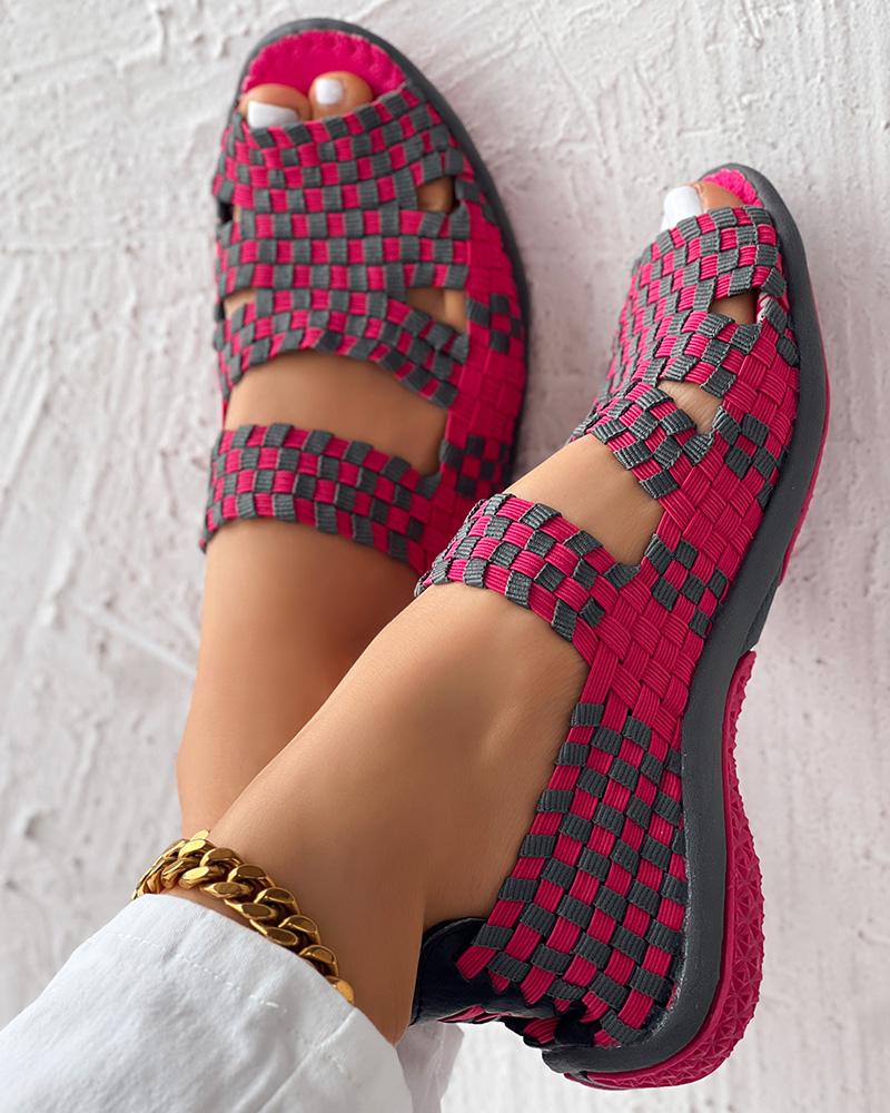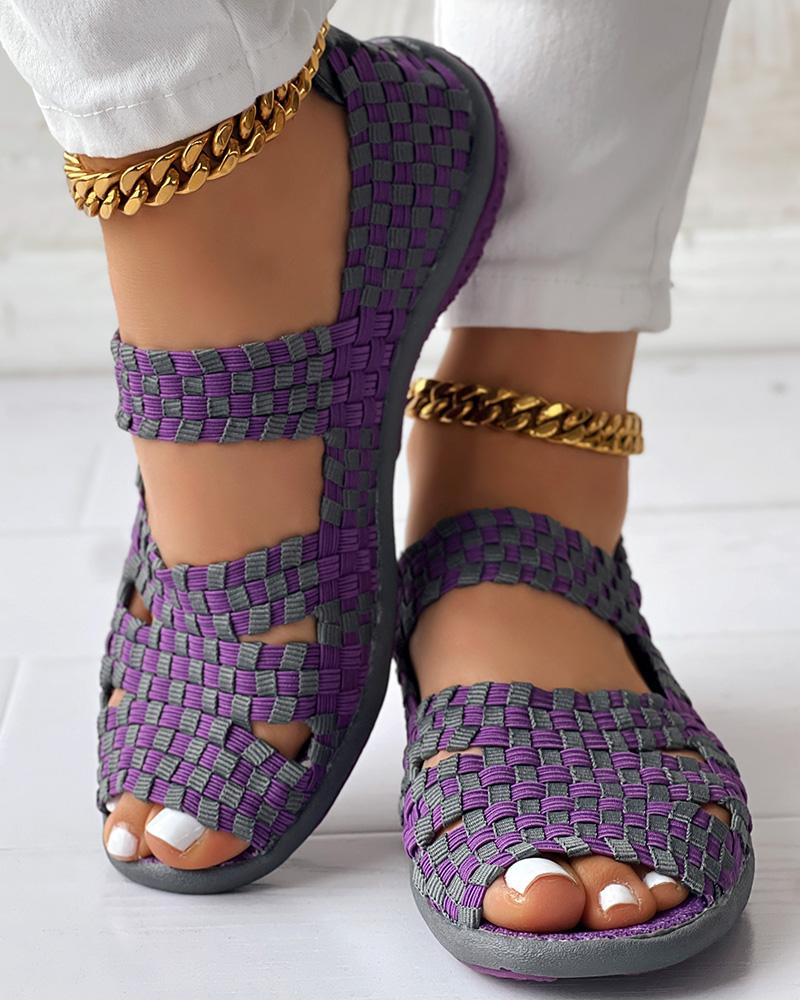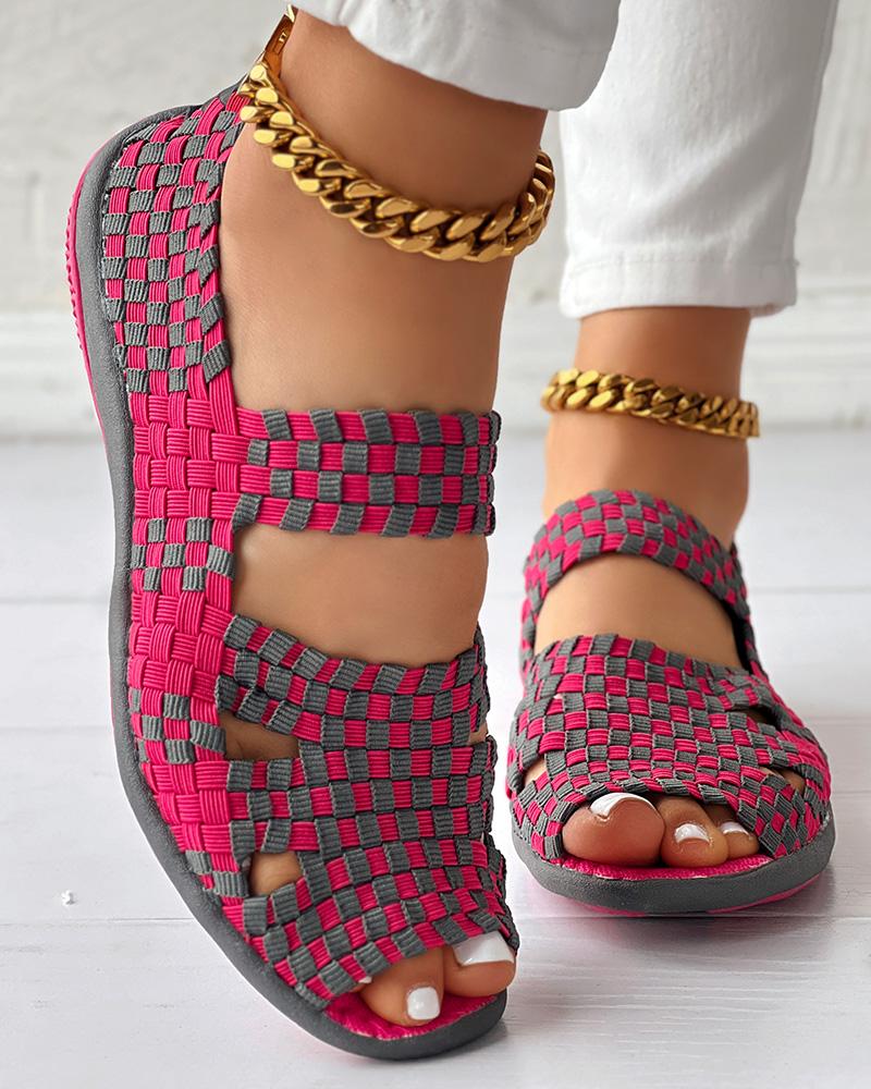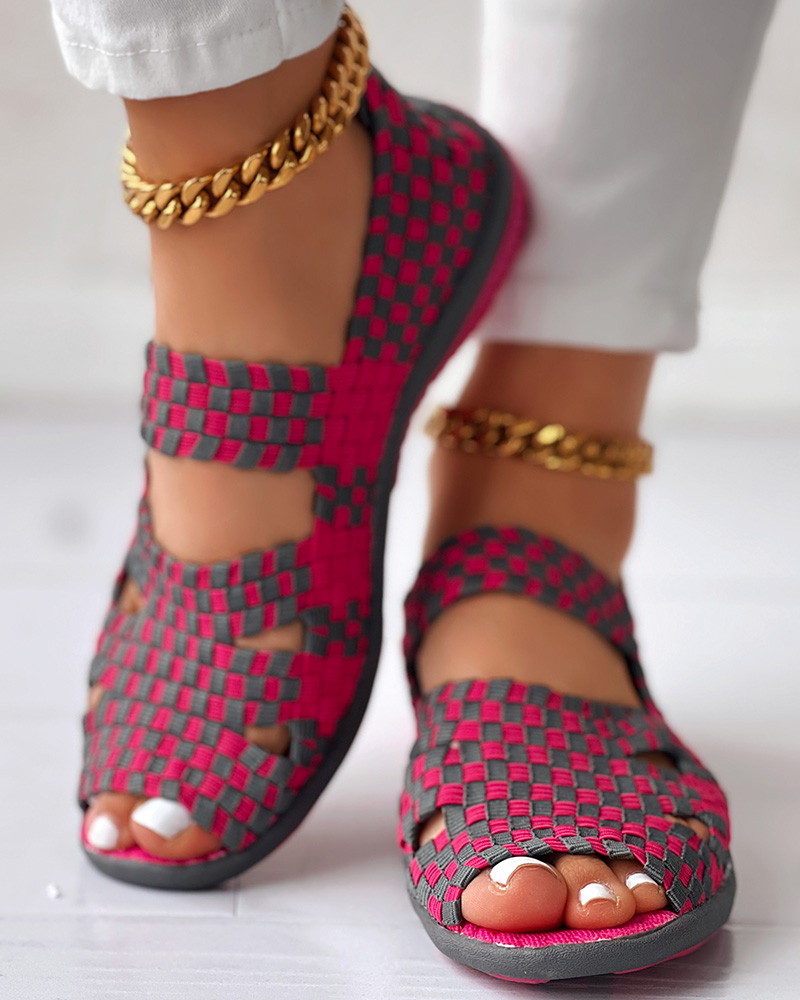 Colorblock Peep Toe Hollow Out Sandals