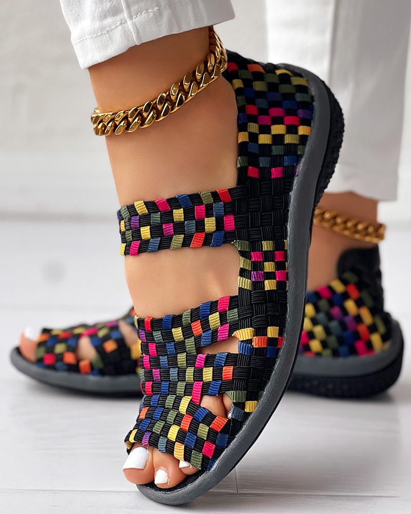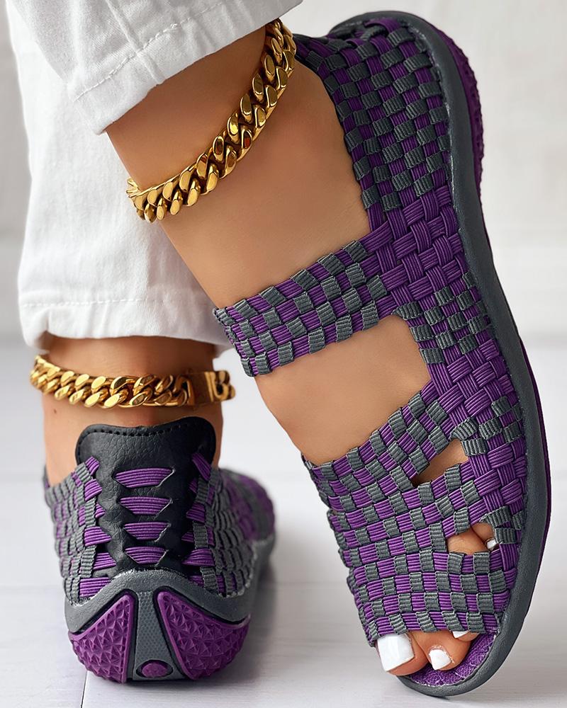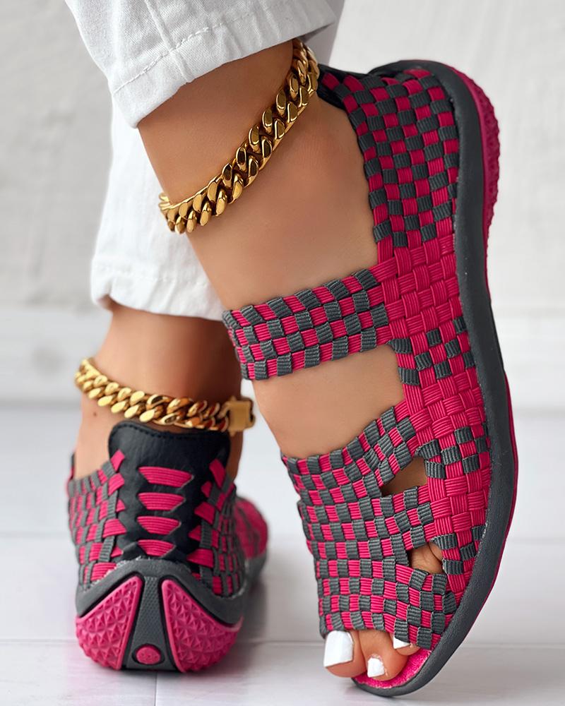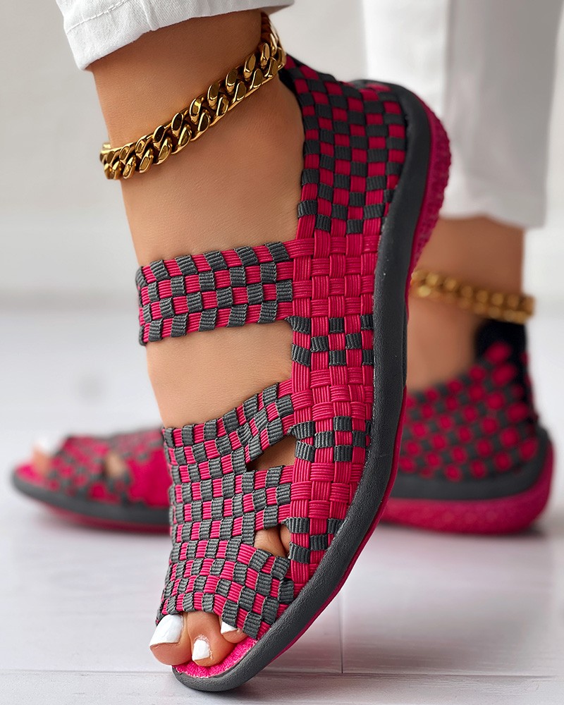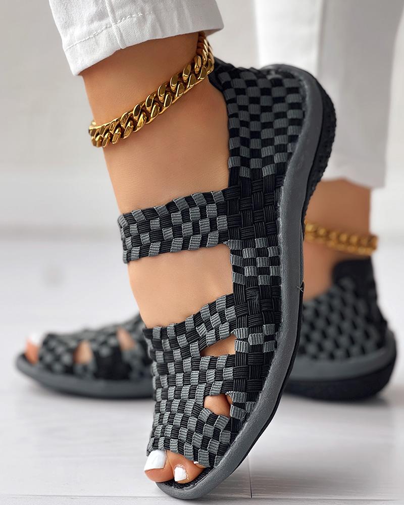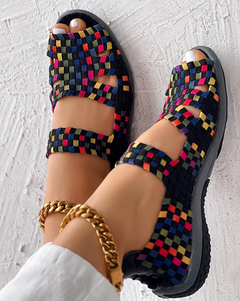 Colorblock Peep Toe Hollow Out Sandals
