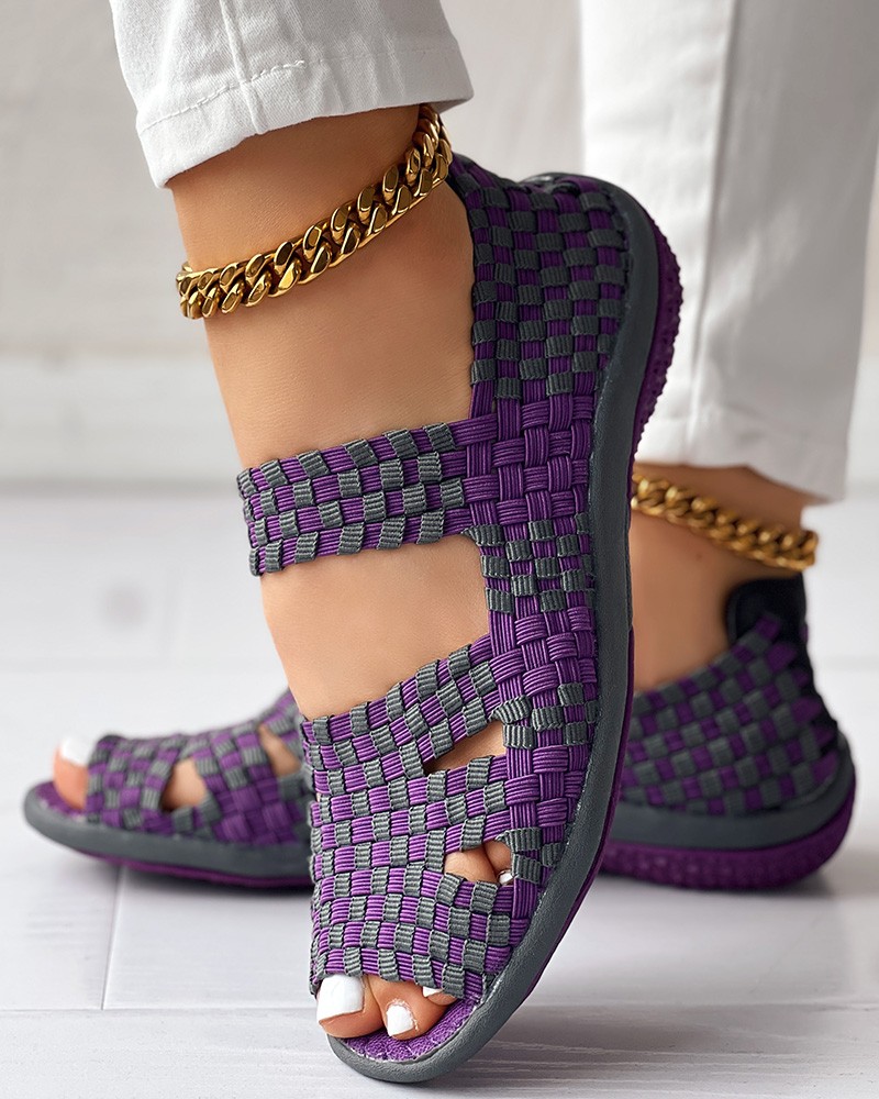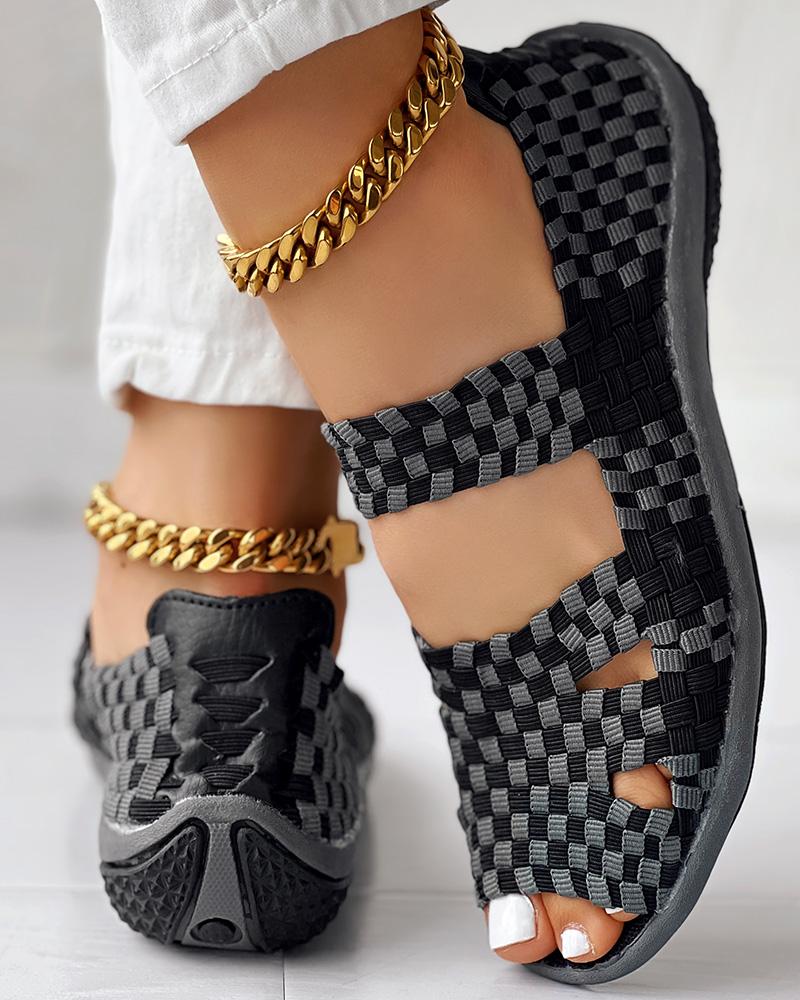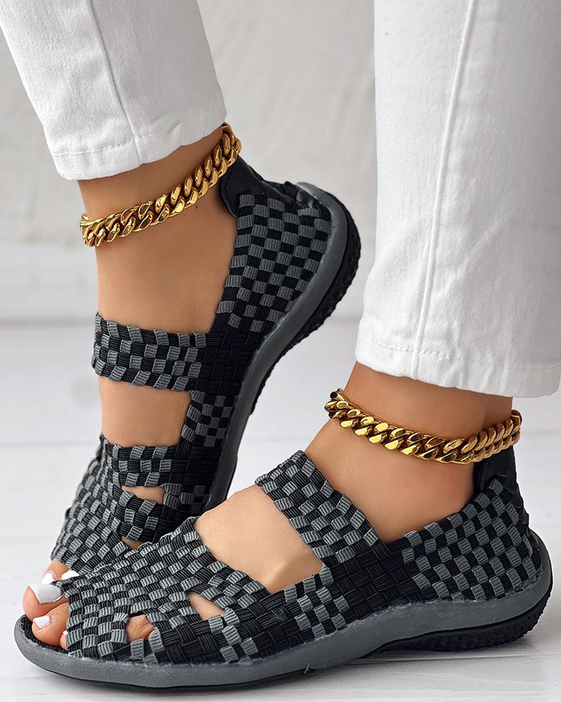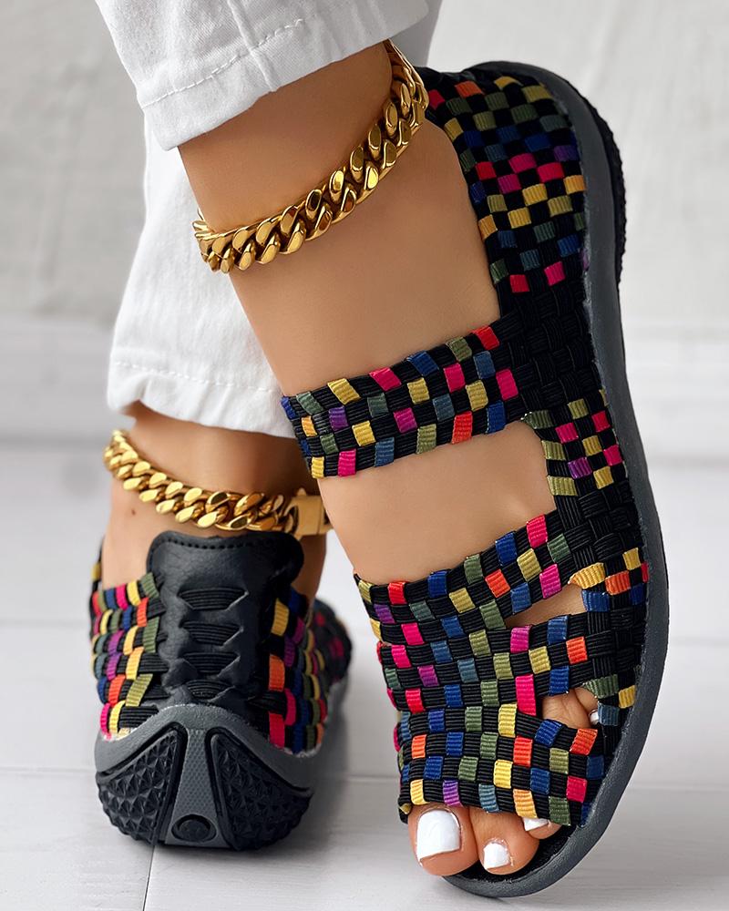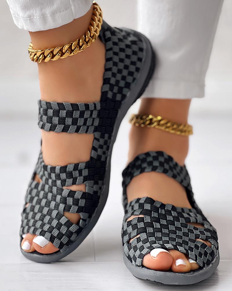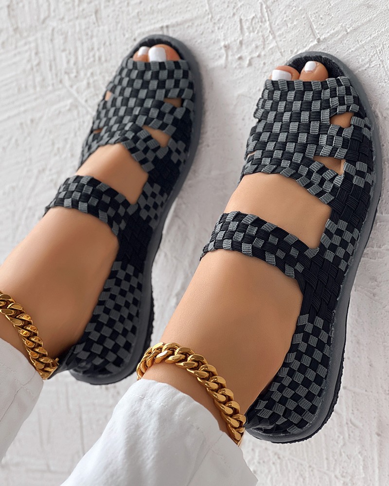 Colorblock Peep Toe Hollow Out Sandals