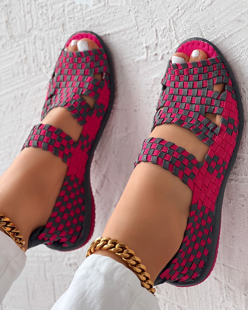 • Colorblock Peep Toe Hollow Out Sandals