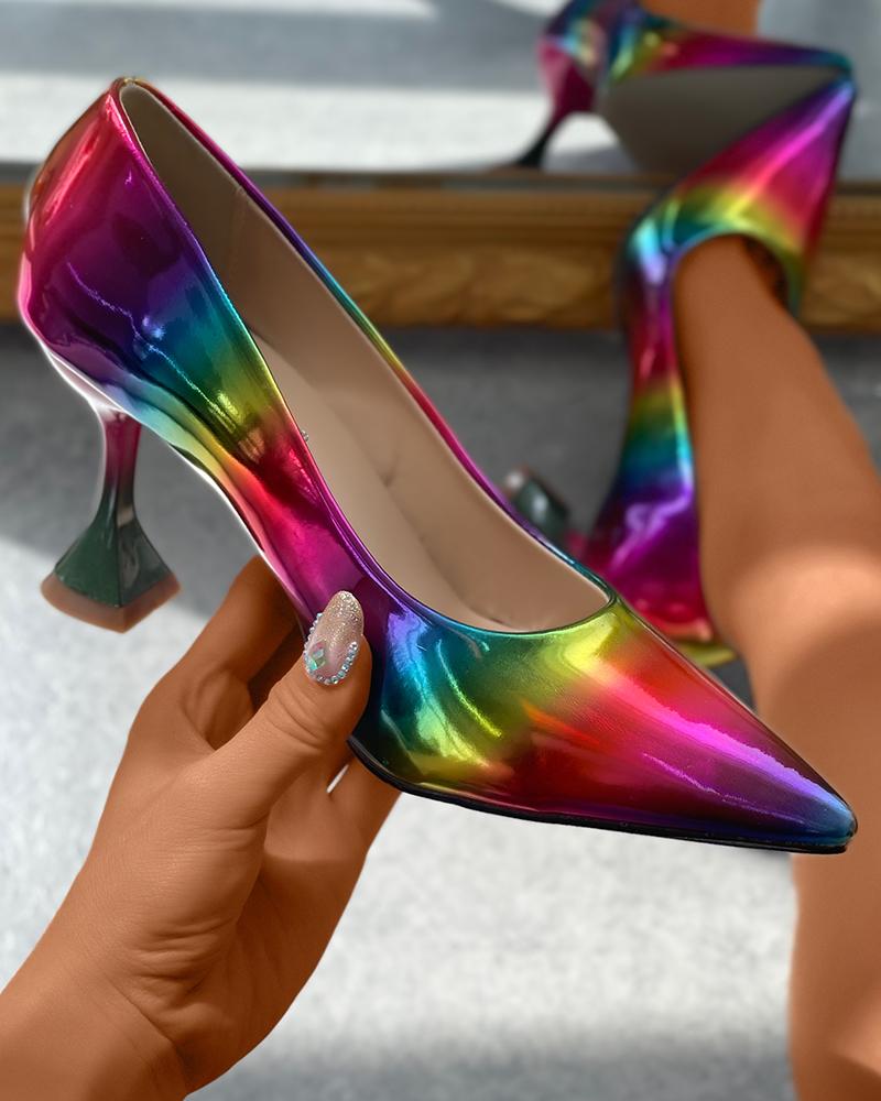 • Rainbow Stripe Pointed Toe Pyramid Heel Pumps