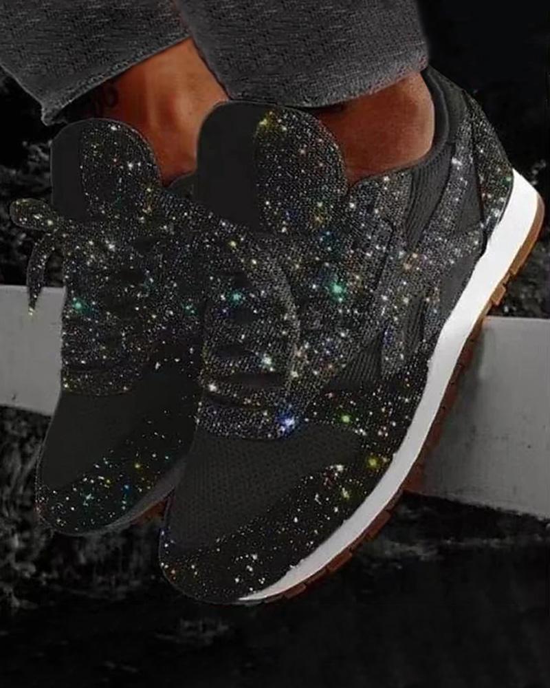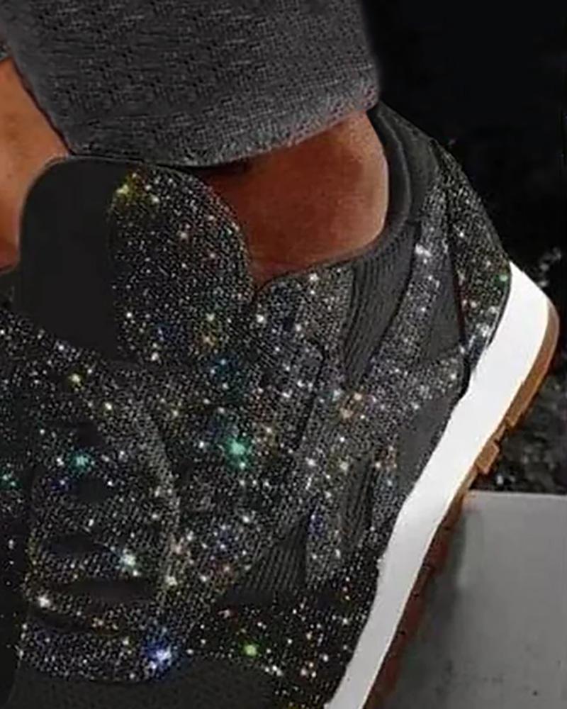 Sequins Lace-up Muffin Sneakers