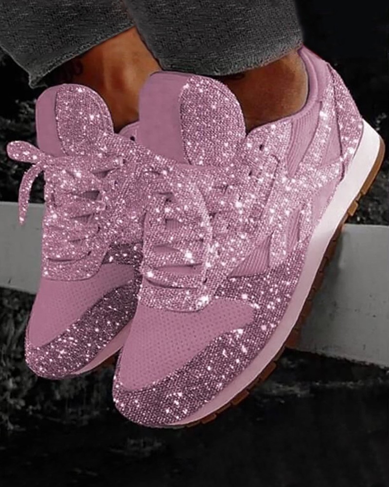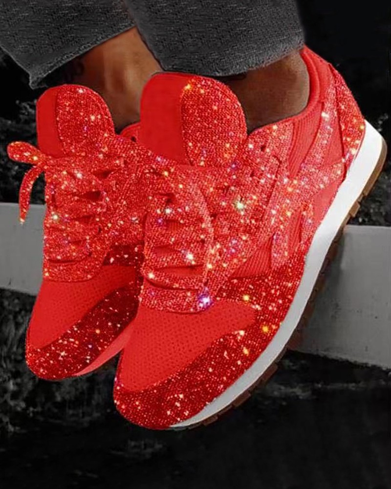 • Sequins Lace-up Muffin Sneakers