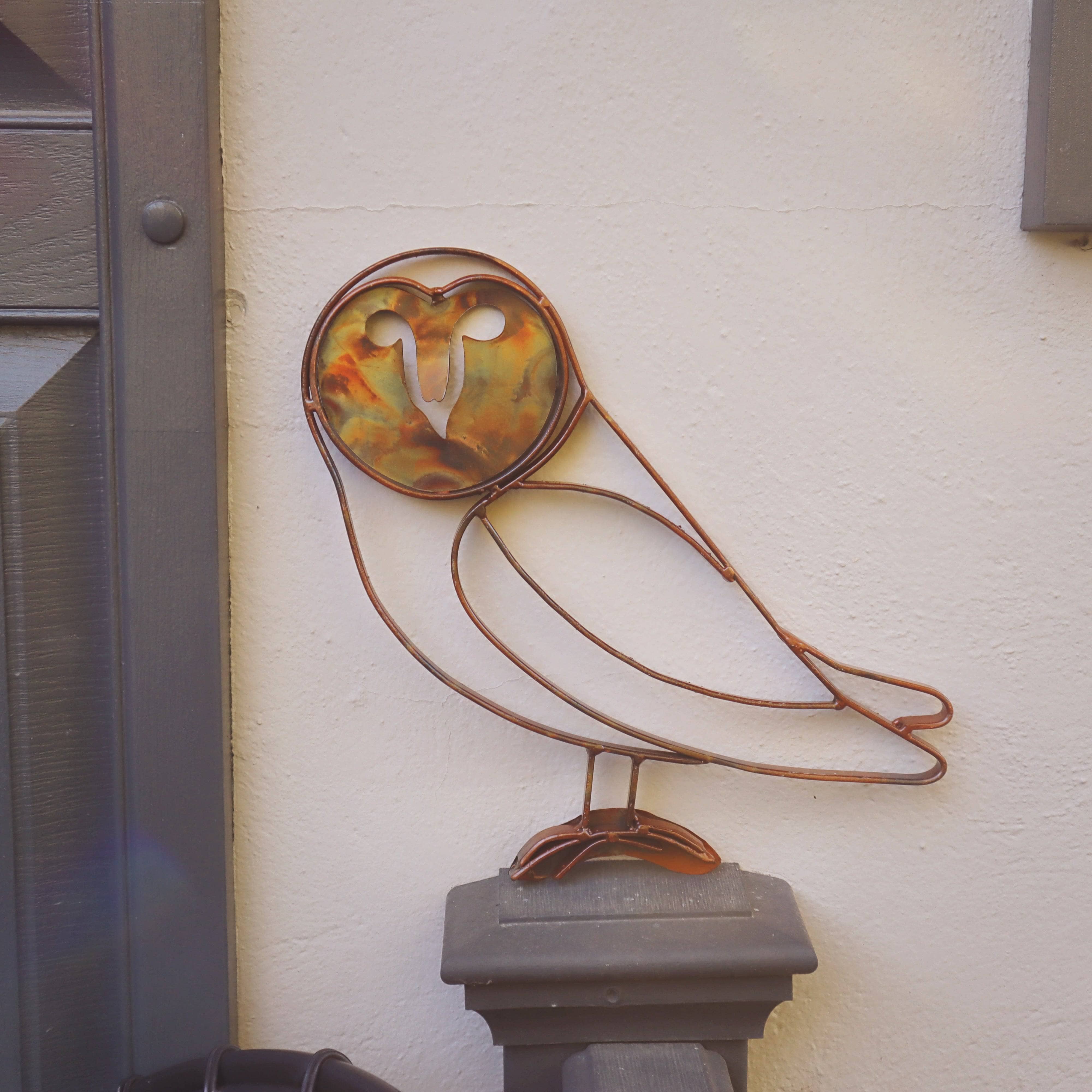Bring a sense of wisdom to your home or garden with our beloved Barn Owl Wall Décor. This piece, which is made of steel and finished in a natural, flamed metallic color, looks good just about everywhere. Whether you choose to display this owl in your yard, garden or even your study, you’ll appreciate the handcrafted details that really bring this wise guy to life. Like all of our wall decorations, this item has been individually made for you to enjoy for years to come.